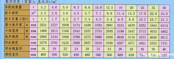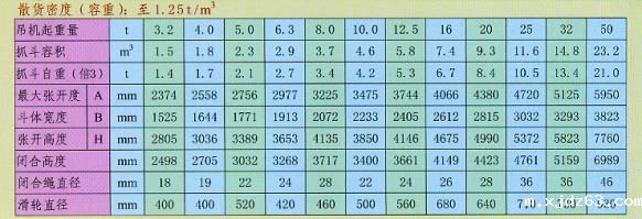 双索双瓣抓斗抓取比重为0.4-3.2t/m3各种粒度均匀的散货,通常为粮食、煤炭、水泥、黄砂石子、矿粉、矿石、盐等。抓斗容积有0.5至10立方。