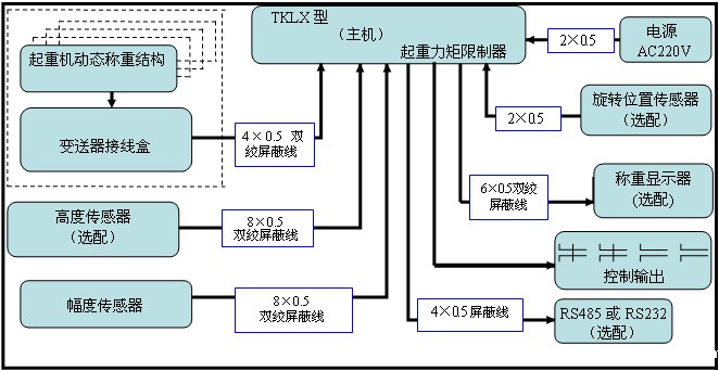 一种解决中小型码头用“回转动臂式起重机”采用双索无功抓斗装卸散料中,也能安装起重力矩限制器和同时解决无功抓斗装卸计量问题,通过安装在起重臂头部的《起重机动态称重结构》采集重量信号和安装在起重臂根部的角度传感器采集角度信号,对采集到的重量、幅度等信息进行综合处理,相应的输出各种开关量,用以控制起升、变幅机构,防止超载和超幅,从而达到安全保护、高效的作业目的。力矩仪表能显示当前工作角度、工作幅度。额定起重量、当前重量,如加称重管理仪表还可把每斗装卸净重和次数累计清单、汇总,解决无功抓斗吊机不能安装电子计量监控系统和起重机力矩限制器,该《起重机动态称重结构》能很好的克服吊臂在工作中无规律的变幅,不断接受钢丝绳的压力传给称重滑轮采集重量信号,当完成95%额定起重量讯响器断续预警,在100%额定起重量连续报警,在105%额定起重量时,切断主副机和变幅机构上升电源,对设备和安全起保护作用。